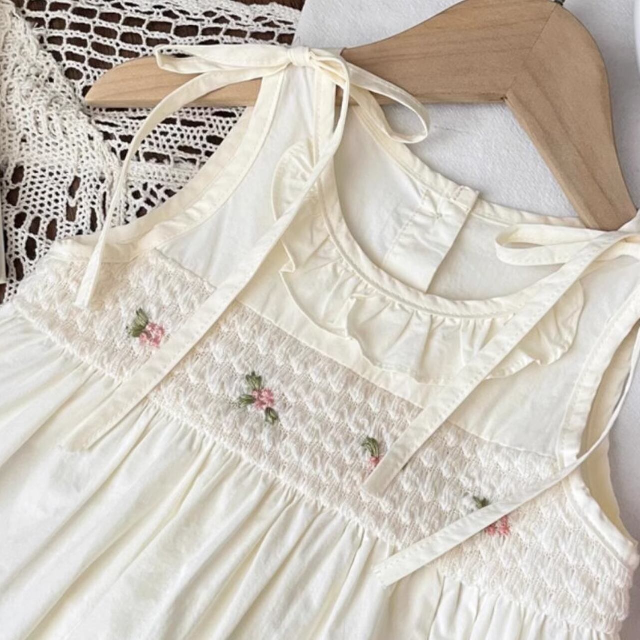 肩のリボンと、裾のフリルも素敵ですね。