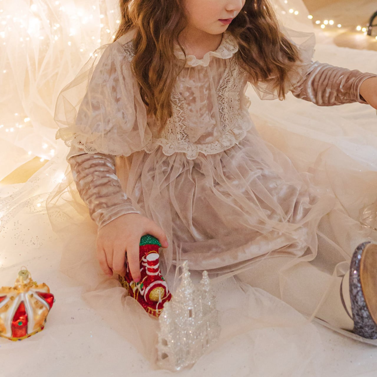 パフスリーブチュールワンピースで、お子様の魅力を引き立てる特別な一着!